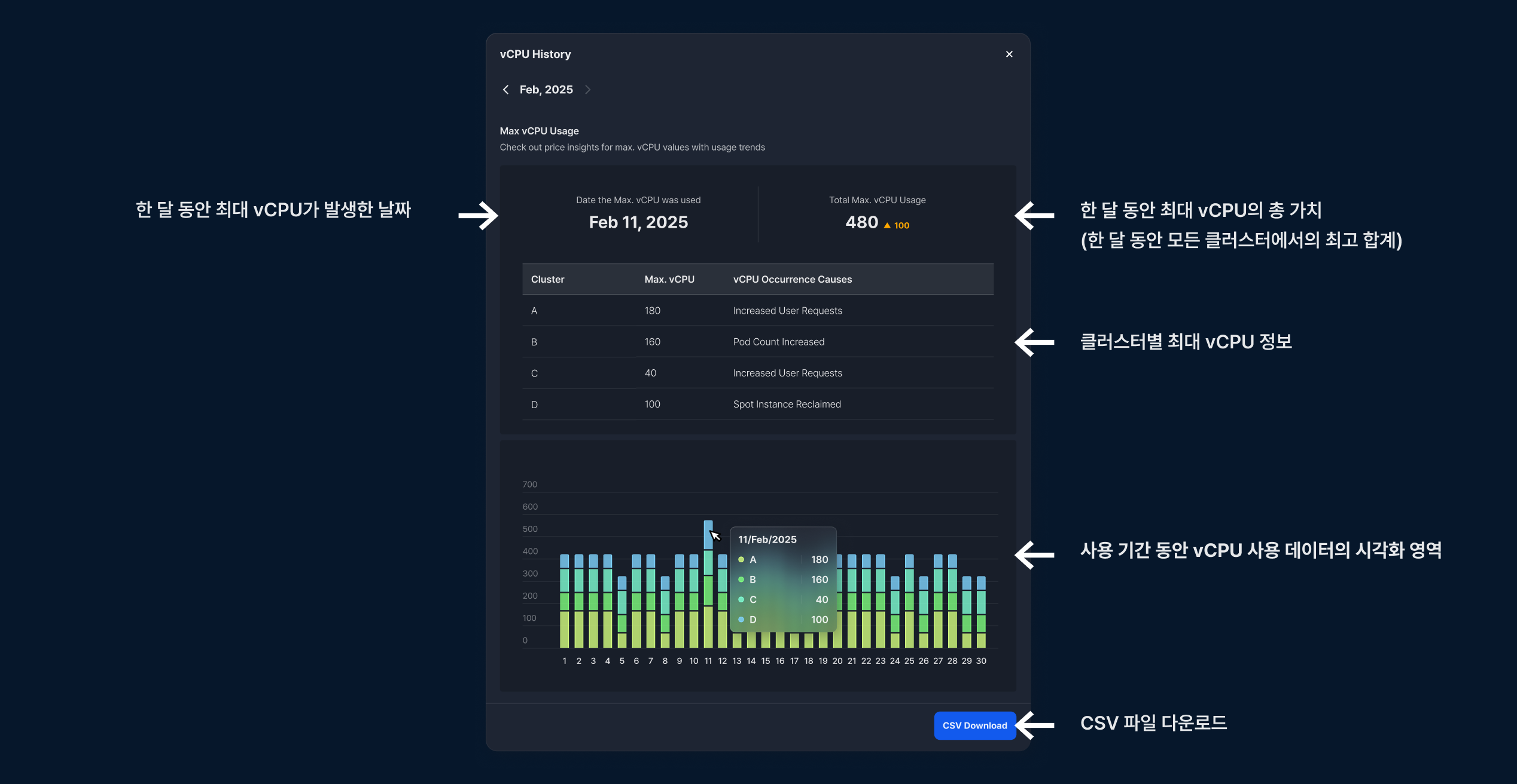 Skuber⁺ 플랜 상태를 쉽게 관리하고, vCPU 사용을 추적하고, 결제 및 청구 정보를 편집할 수 있습니다.